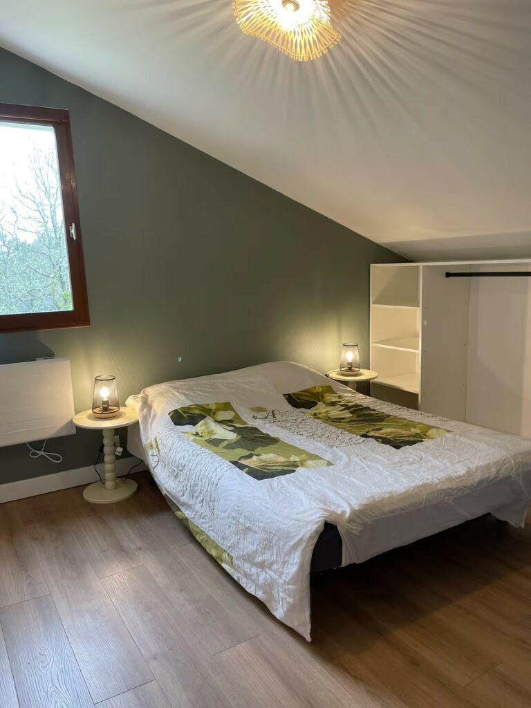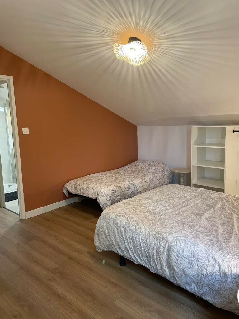 À l’étage, 3 chambres supplémentaires offrent chacune un lit double (140 cm) et un lit simple (90 cm), plus une seconde salle d’eau avec WC. Chaque chambre peut ainsi accueillir confortablement un couple avec un enfant !